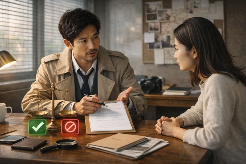 大切なのは、探偵業法を遵守し、法の範囲内で活動している限り、あなたが行う「調査依頼」という行為自体も完全に合法であるという事実です。正当な理由(※家族の安全確認、結婚前の事実確認、契約上のトラブル回避など)に基づき、公的な届け出を済ませた探偵社に依頼することは、個人の権利を守るための正当な防衛手段と言えます。法の限界を知ることは、決して不自由を意味しません。むしろ、どのラインまでが安全な調査なのかを明確に理解することこそが、依頼後の法的トラブルを回避し、得られた情報を確実な武器に変えるための第一歩となるのです。